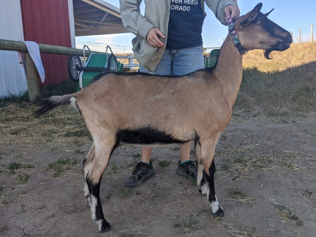 Hi there! My name is Annabelle. I am a 1.5 year old Alpine. I am very sweet and love people. One of my best friends is Diana. We like to play together! I am clever and know how to sneak past the big goats so they don’t bite my ears. My favorite treat is animal crackers and I liked to be scratched on my shoulders. I hope you have a great week!