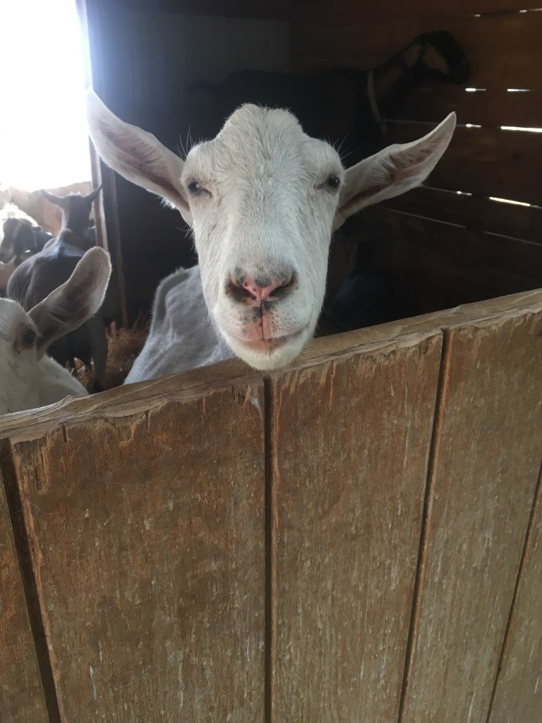 My name is Henry. My people also call me Henny. I am a 4 year old Saanen wether. Being a wether means that I am castrated and I put all the extra energy I got from that into growing. I’m about 6’5” when I stand up on my back legs. I am very gentle and sweet even though I am huge. I LOVE snacks! Some of my favorites are carrots, apples, brussel sprouts, and oranges! However, as long as it’s a fruit or veggie I’ll try almost anything. If you come visit the farm I’ll be sure to come and greet you! I hope you have a good week filled with tasty snacks!